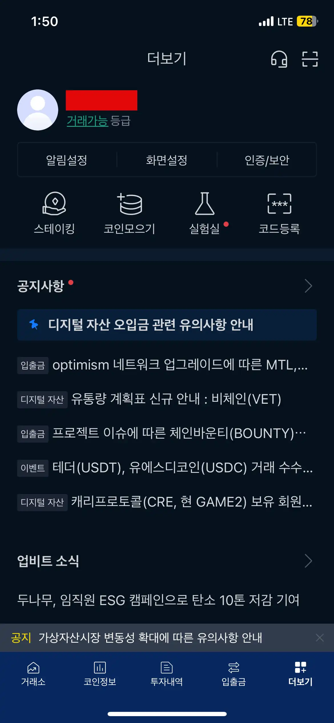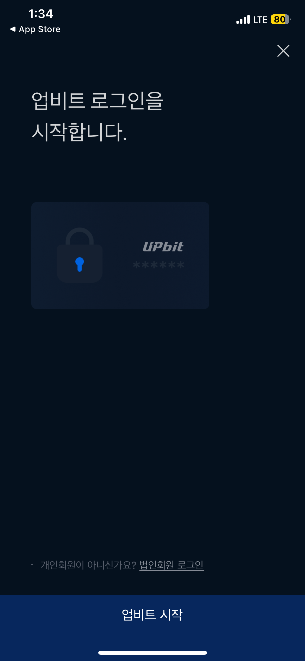 모든 절차를 완료하고 입출금 계좌를 만들었다면 다시 업비트 앱을 접속합니다.