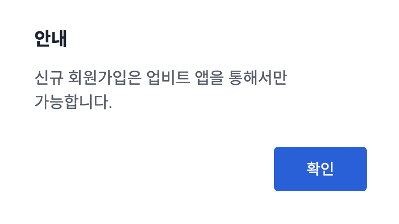 1. 업비트에 신규 회원가입해야 되는 분들은 '업비트 앱'을 통해서만 가입이 가능하므로 앱을 설치하여 접속해 주세요.