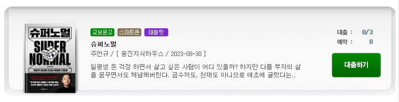 저는 주언규 님의 슈퍼노멀을 빌려보려고 해요. '대출하기'를 클릭합니다.