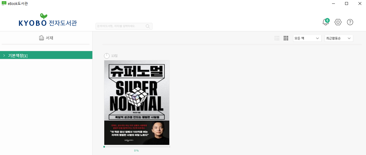 대출을 완료하면 아까 설치했던 eBook전자도서관에 대출한 책이 업로드됩니다.