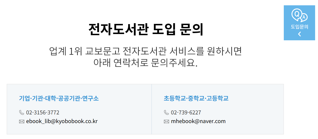 그렇다면 내가 속하거나 이용하려는 기관은 교보문고 전자도서관을 도입했을까?