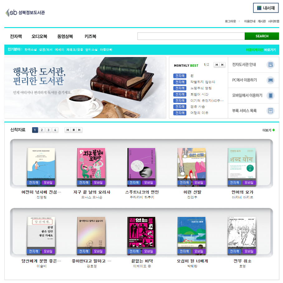 바로 집 근처 도서관 홈페이지에 접속해 보았습니다.